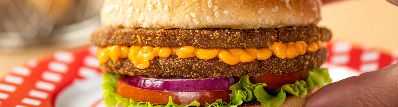 Hamburger BOUA empanado com farinha de pão e queijo cheddar cremoso